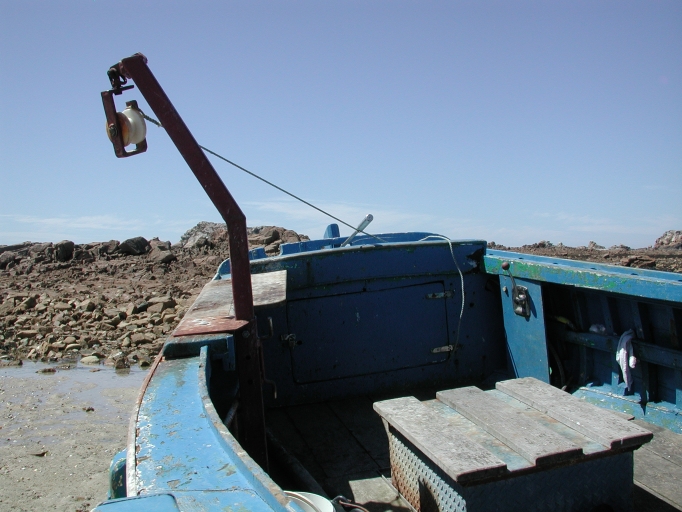 Vue du treuil, vire casier du canot 'Armor' pour remonter lignes de fond, filets et casiersImmatriculation
