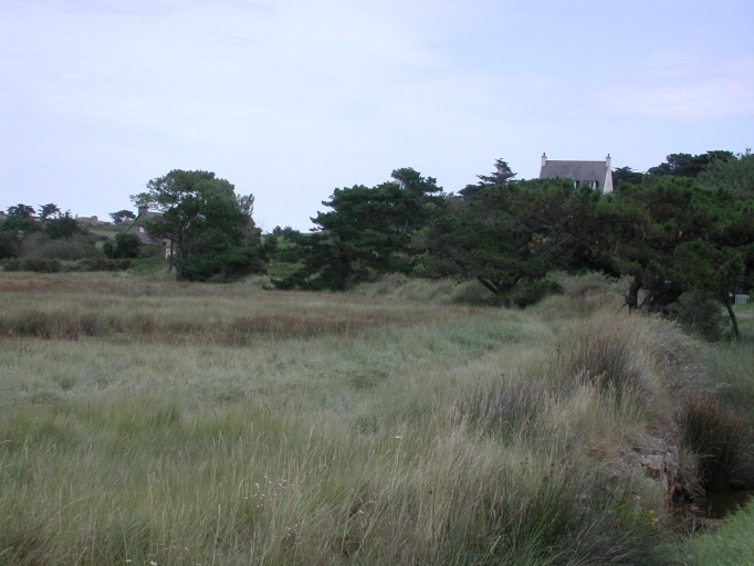 le marais derrière les cordons de galets de pors Scaff : zone innondable aux grandes marées, enclos par des murets de pierres sèchesImmatriculation