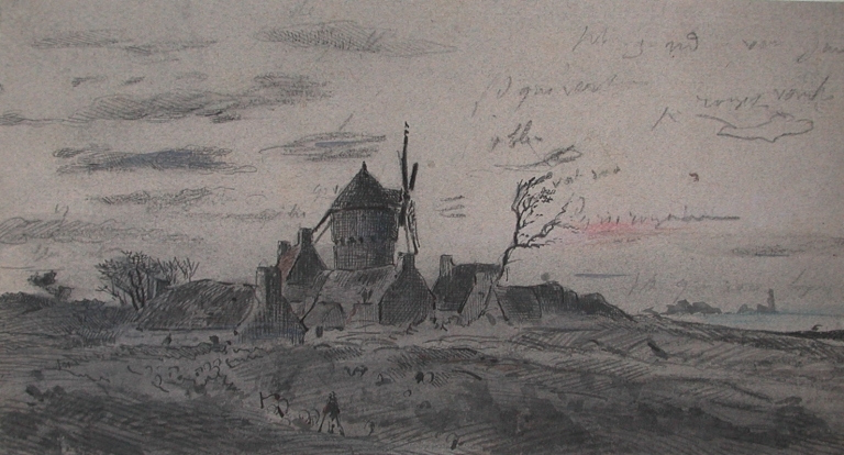 Moulin à vent sur la côte de Plougrescant, fin 19ème siècle (dessin de Louis-Marie Faudacq, collection particulière)Immatriculation