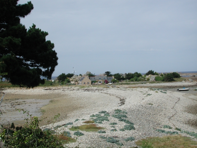 Vue du cordon de galets qui relie l'île Ivinec à l'ïle aux PinsImmatriculation