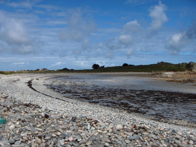 Vue de la grande grève en arc de cercle de la lagune : ancien port des MoinesImmatriculation