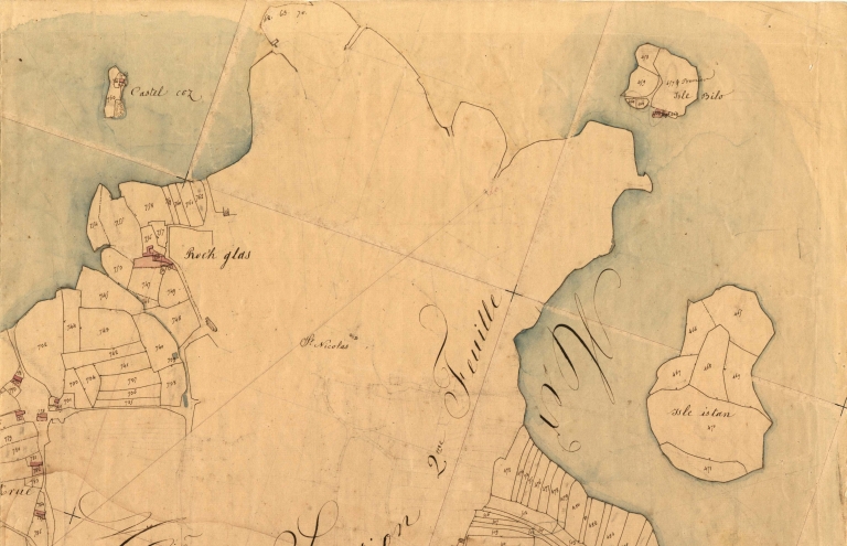 Extrait du cadastre de 1834 : remarquer 8 parcelles sur l'îlot, dont 2 parcelles bâties (AD 22)Immatriculation