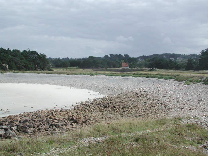 Vue du cordon de galets qui relie l'Île Ziliec et Baëlanec à l'île aux OiesImmatriculation