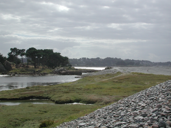 Vue du cordon de galets qui rejoint la digue Nord et se prolonge ensuite vers IlliecImmatriculation