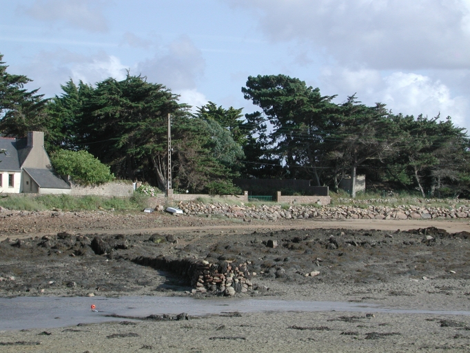 Petite jetée en pierres sèches perpendiculaire au rivage Sud de l'île BaëllanecImmatriculation
