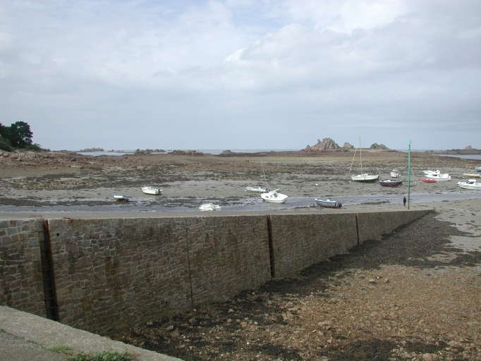 Vue de la cale : remarquer la forte pente et les murs de quais en moellonsImmatriculation