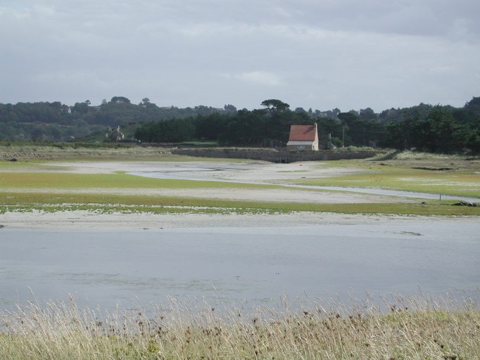 Vue de l'étang du moulin à marée et de la jonction entre la chaussée et l'île Ozac'hImmatriculation