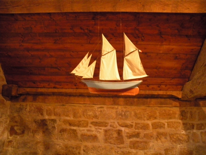 Vue générale de l'ex-voto : maquette de goéletteImmatriculation