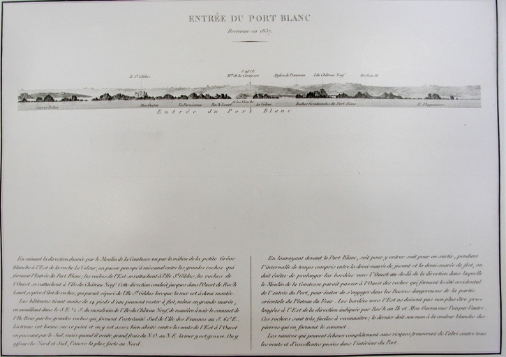 Extrait du relevé de côtes de Beautemps-Beaupré, 1837 : Île du Château-Neuf (le 'Pilote français', collection particulière)Immatriculation