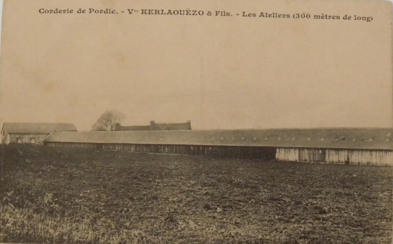 Vue des bâtiments de travail de l'ancienne corderie de Kerlaouëzo, 1er quart 20ème siècle (carte postale, collection particulière)Immatriculation