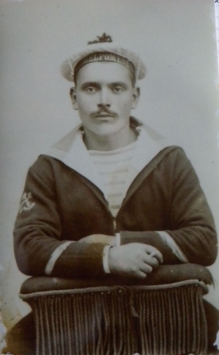 Portrait de Jean-François Eveno, gabier à bord du navire école frégate 'Melpomène', en 1900 (collection particulière)Immatriculation