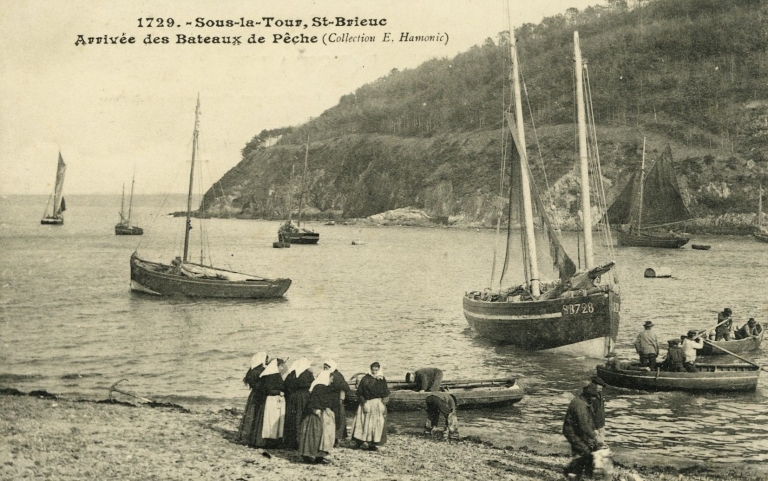 Débarquement de la pêche des lougres, en 1904 (carte potsale, AD 22)Immatriculation
