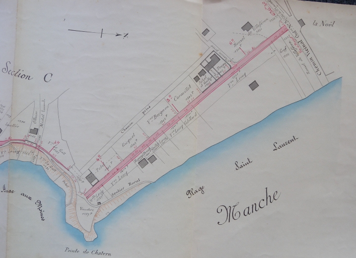 Plan parcellaire du chemin du phare de la Pointe à l'Aigle à la grève de Saint-Laurent, en 1925 : projet d'élargissement des chemins n° 2 et n° 5 (AD 22)Immatriculation