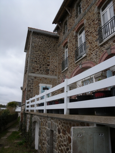 Vue d'un bâti littoral, construit en briques rouges, daté de 1907, sur le sentier de la falaiseImmatriculation