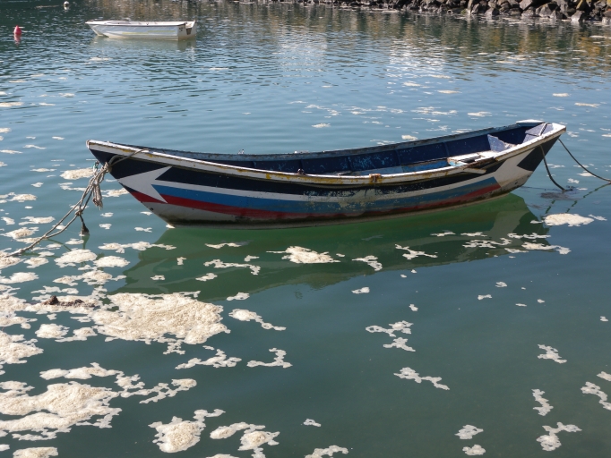 Vue d'un ancien doris de pêche mouillé devant la cale de la DouaneImmatriculation