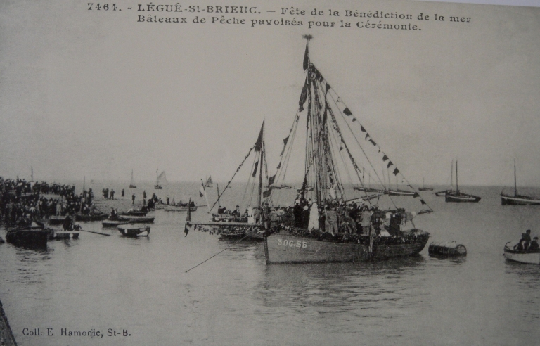 Bateau du Légué pavoisé sous-la-Tour pour les régates, 2ème quart 20ème siècle (carte postale, collection particulière)Immatriculation