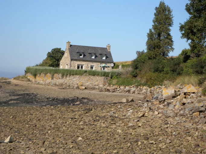 Vue d'une forme d'habitat littoral isolé en front de mer de Kerbors sur la rive droite du JaudyImmatriculation