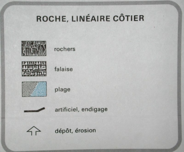 Légende de la carte IPLI (Inventaire Permanent du littoral, 1977) : roche, linéaire côtier (IGN, 1982)Immatriculation