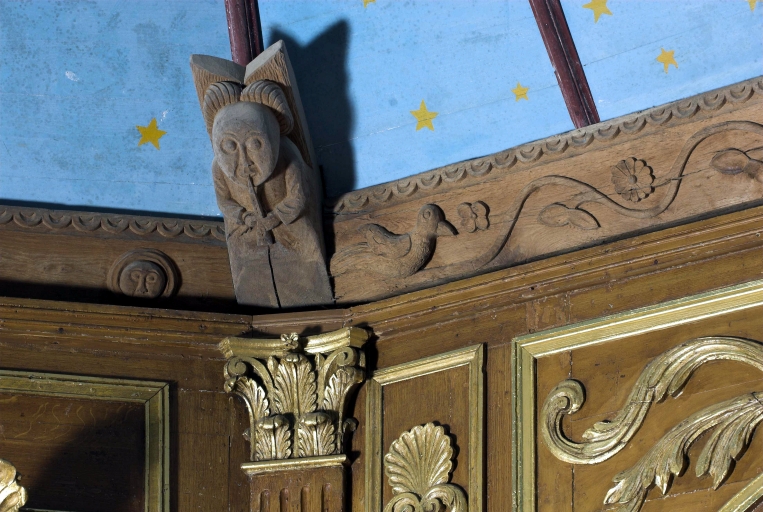 Détail de la sablière du choeur. Culot sculpté d'un ange musicienImmatriculation