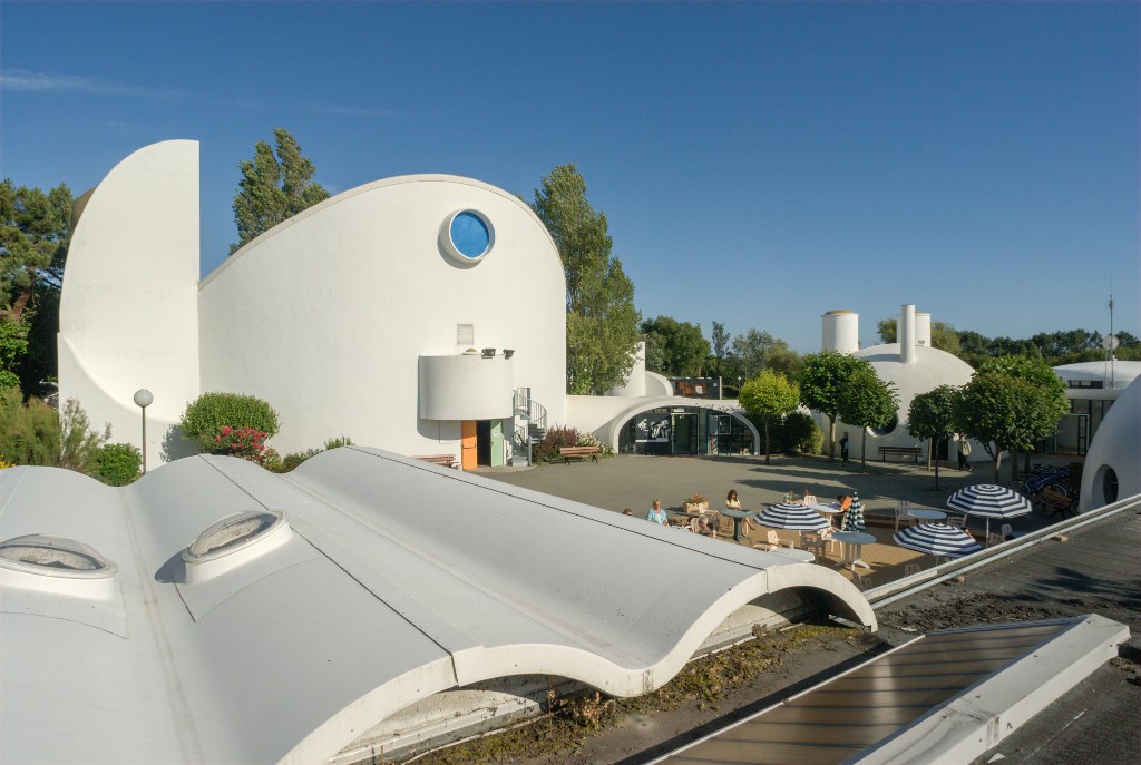 La collaboration en 1969 de l'architecte Henri Mouette avec le sculpteur Pierre Székely aboutit à cette plastique singulière et sphérique, inspirée par des recherches en matière d'écologie et d'économie des matériaux.Immatriculation
