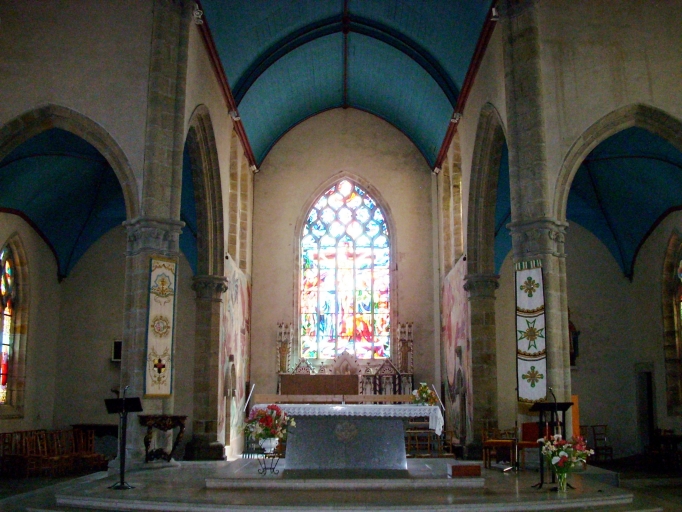 Ploudalmézeau, église paroissiale : vue du choeur depuis la croisée du transeptImmatriculation