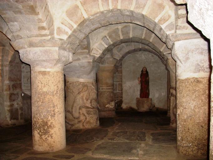 Lanmeur, église paroissiale Saint-Mélar : crypte, vue transversale nord-ouest, détailImmatriculation