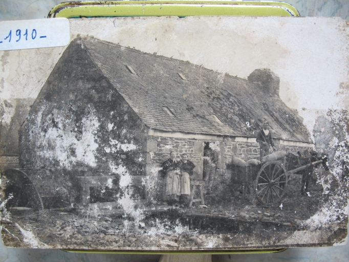 Moulin de Lidien en 1910. Vue générale nord-ouest prise avant la réfection du pignon est et la surélévation des murs. Collection particulièreImmatriculation