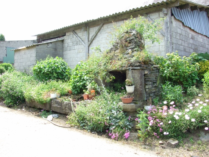 Kerboulou. Puits en granite et schiste associé à deux auges. Vue générale nord-est. Section D3 parcelle 622Immatriculation