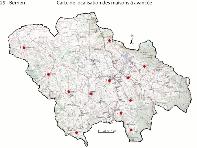 Les maisons, fermes et hameaux de la commune de Berrien,
