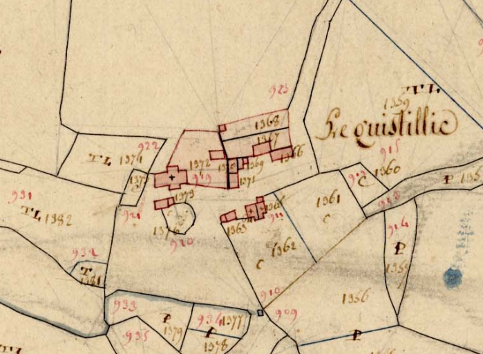 Quistillic en 1813. Extrait du cadastre, section E5 (A.D. Finistère, 3 P 142)Immatriculation