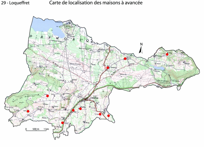 Les maisons, fermes et hameaux de la commune de Loqueffret,