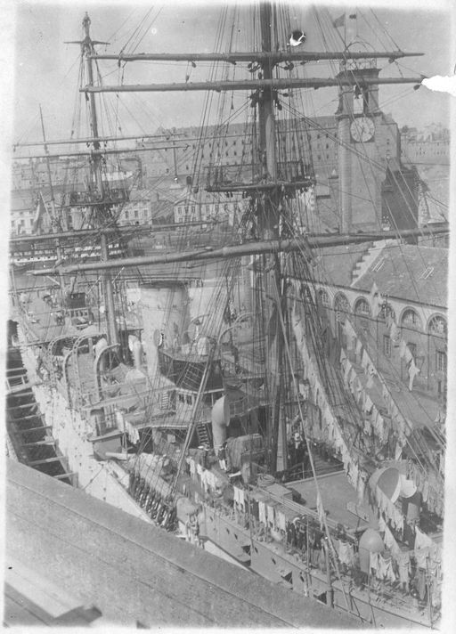 Vue de l'arsenal de Brest vers 1880 : forme de construction, bassin de radoub de Troulan dit forme de BrestImmatriculation