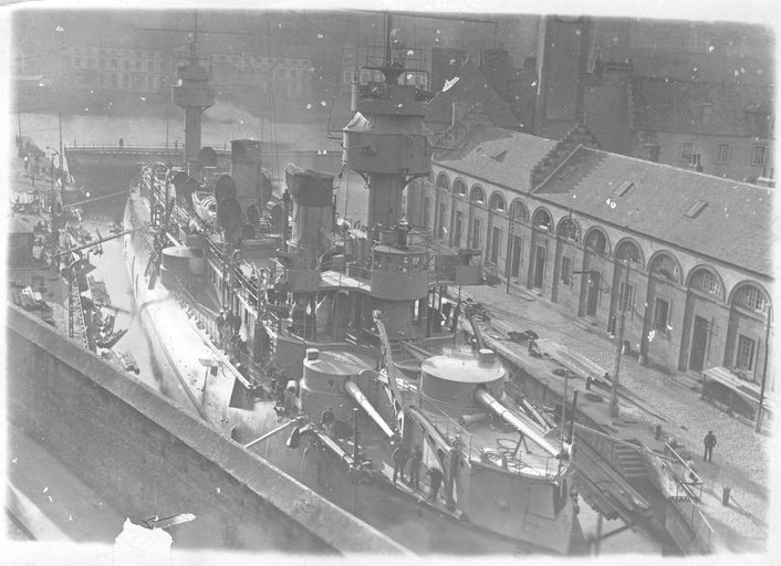 Vue de l'arsenal de Brest vers 1880 : forme de construction, bassin de radoub de Troulan dit forme de BrestImmatriculation