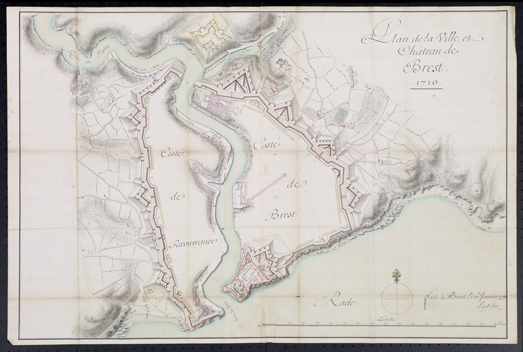 Plan de la ville et du château de Brest, fait à Brest le 22 janvier 1710 par RobelinImmatriculation