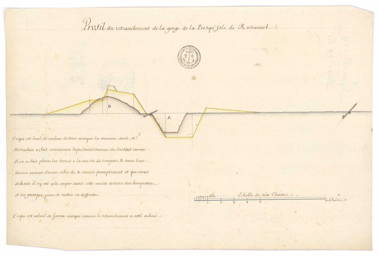 Profil du retranchement et des terrassements des Lignes de Quélern (gorge de la Presqu'île de Roscanvel) exécutés sur l´ordre de Vauban, 1689Immatriculation