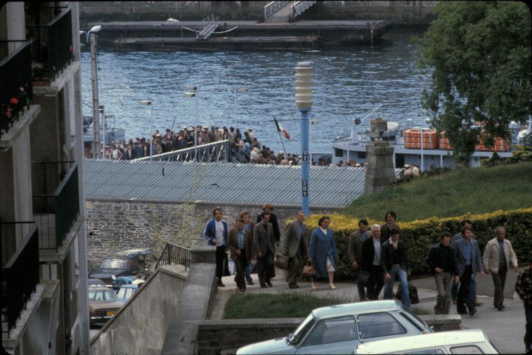 Vue de l'arsenal de Brest en Penfeld en 1980 : sortie de l'arsenal et débarquement du transrade coté porte Jean BartImmatriculation