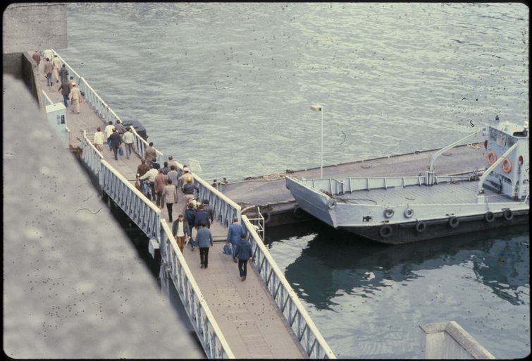 Vue de l'arsenal de Brest en Penfeld en 1980 : le Pont Gueydon ou pont flottant sur la PenfeldImmatriculation