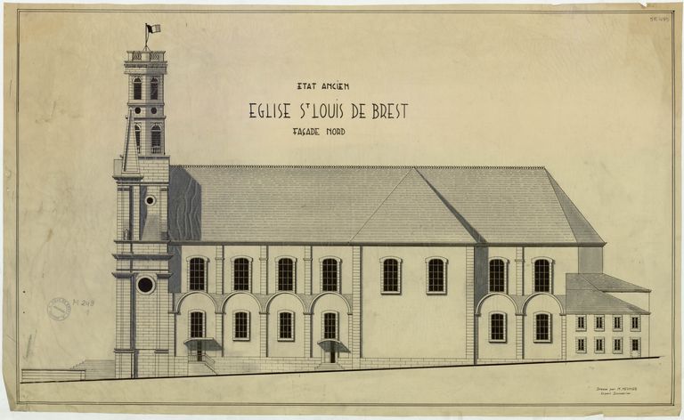 Elévation de l'église Saint-Louis à Brest : façade nord, 1895 par Meunier, expert immobilierImmatriculation
