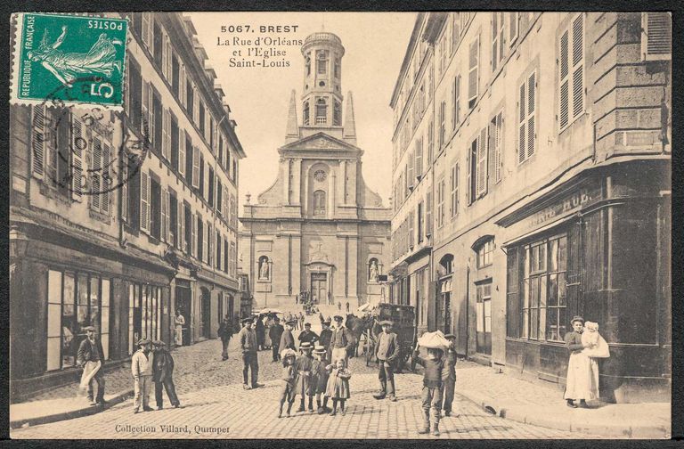 Vue de situation de l'église Saint-Louis depuis la rue d'Orléans. Carte postaleImmatriculation