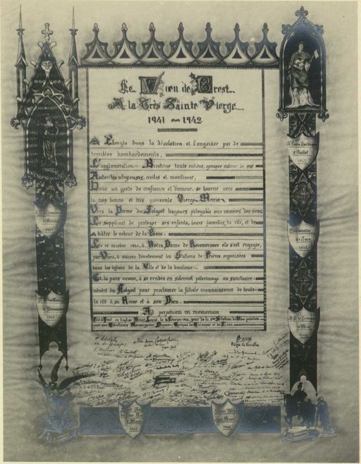 Visite de son Eminence le cardinal Gerlier, primat des Gaules, à Brest le 8, 9 et 10 mai 1943 lors de la 2e journée régionale du voeu de Brest à Notre Dame du FolgoëtImmatriculation