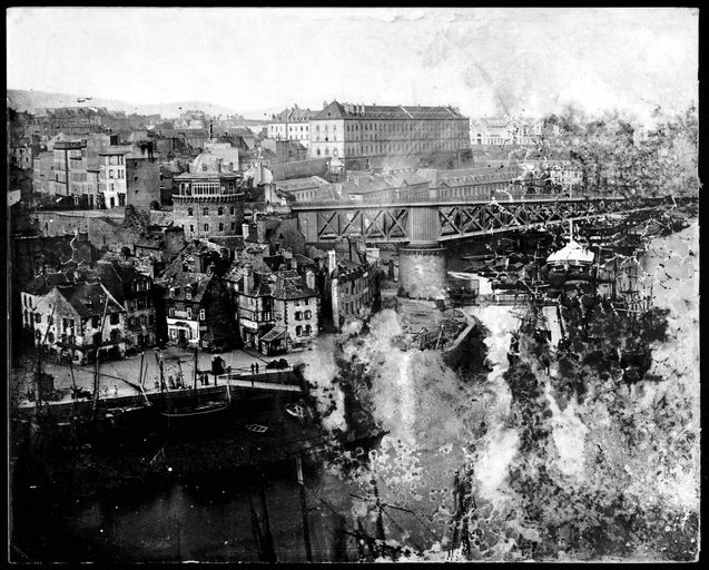 Pont National (pont tournant Schneider et Compagnie Creusot) puis pont de Recouvrance (pont levant), la Penfeld (Brest),