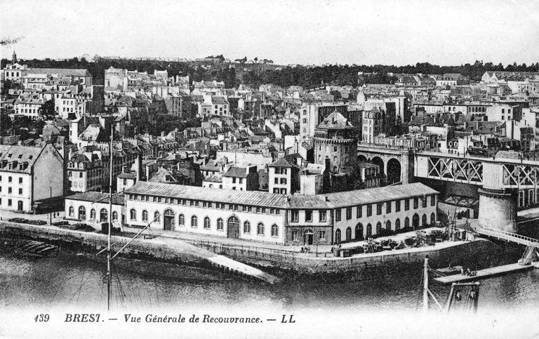 Vue d'ensemble du quartier de Recouvrance à Brest, carte postaleImmatriculation