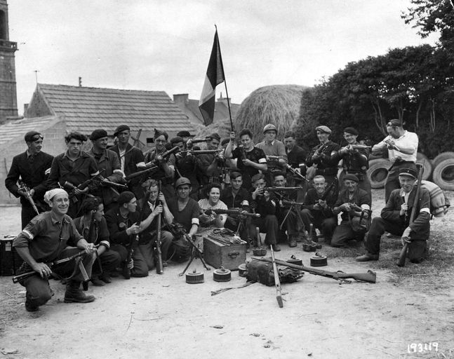 Vue d'un groupe de Forces Françaises de l'Intérieur à Kersaint-Plabennec, septembre 1944 (U.S. Army Signal Corps)Immatriculation