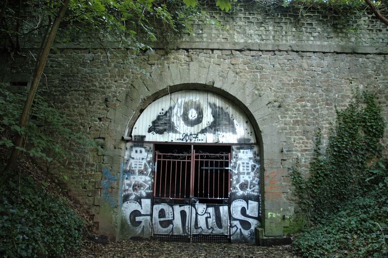 Vue de l'entrée du tunnel d'Heurtebise traversant le front bastionné de l'Harteloire dit Nouvelle enceinte (construite en 1848)Immatriculation