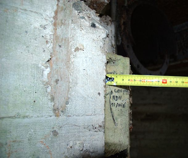 Vue de la batterie lourde codée M.K.B. Portzic III (3 canons de 8,8 cm sous casemates de type 671 SK) (6b / M.A.A. 262) : coffrage en bois encore en placeImmatriculation