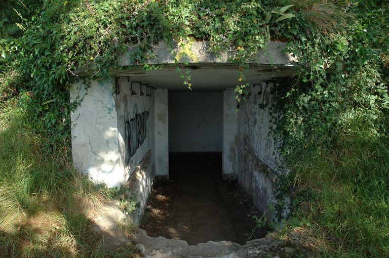 Abri pour projecteur de 150 cm, sur le tracé du chemin côtier, Le Portzic (Brest),