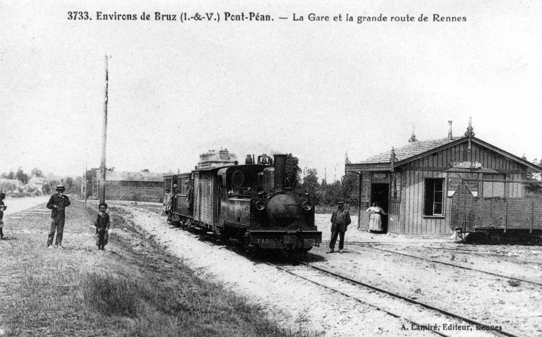 La gare et la station du tramway, (Coll. part., Charles Seigneur, Pont-Péan)Immatriculation