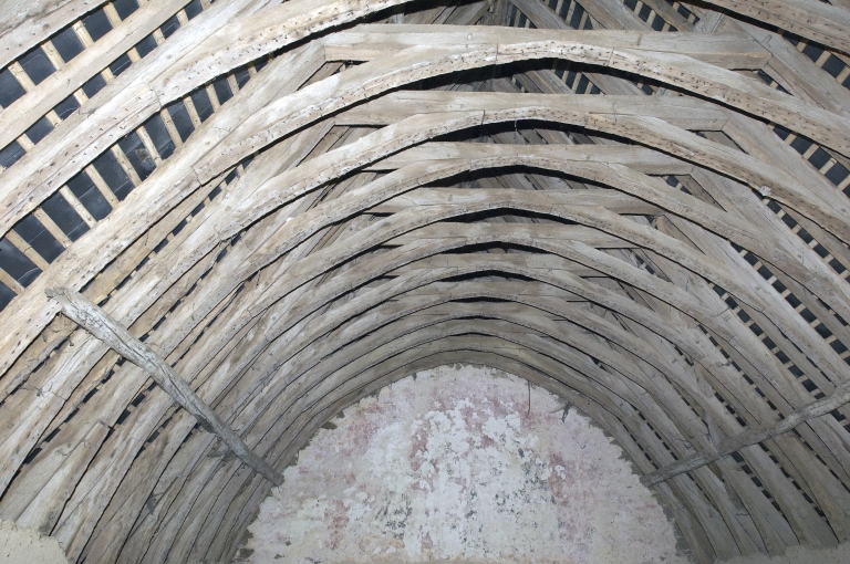 Chapelle, vue d'ensemble de la charpente, revers de l'élévation ouest, décor peintImmatriculation