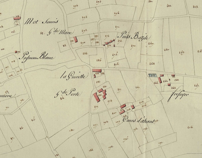 Plan masse et de situation, extrait du plan cadastral de 1812, parcelles 201-202Immatriculation
