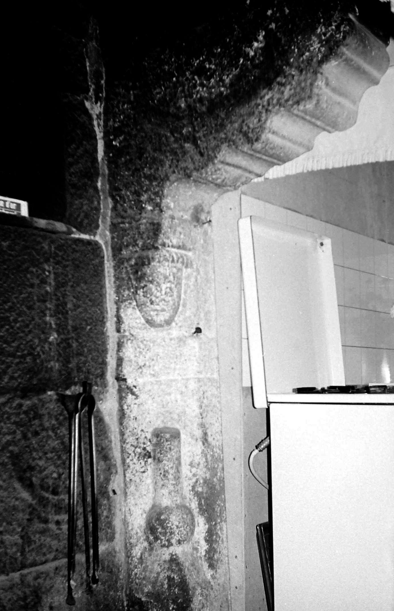 Détail d'une cheminée du 16e ou 17e siècle avec décor de visageImmatriculation